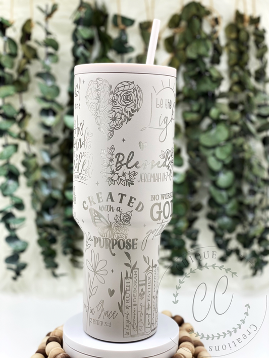 Laser Engraved Womens Bible Verse Tumbler With Handle, Stanley, Eras Tour