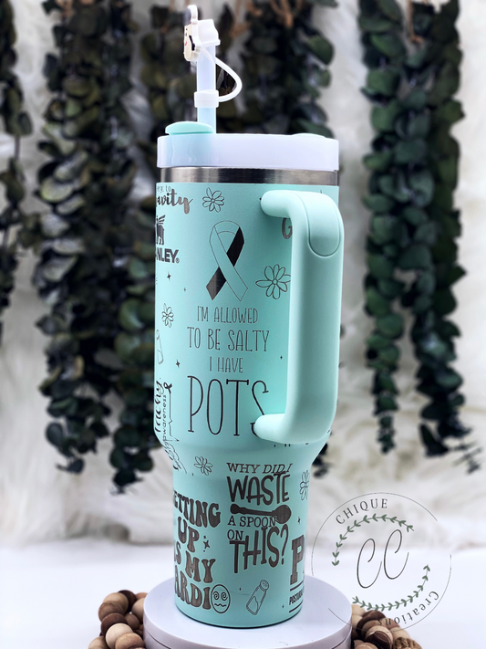 Laser Engraved POTS, Potsie, Dysautonomia, Chronic Illness Awareness Tumbler With Handle s