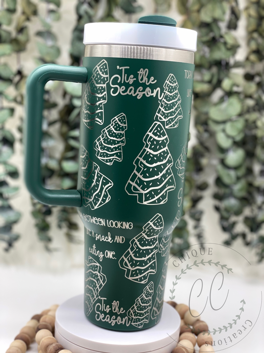 Laser Engraved Christmas Tree Cake, Funny, Lookin Like A Snack Tumbler With Handle, Stanley