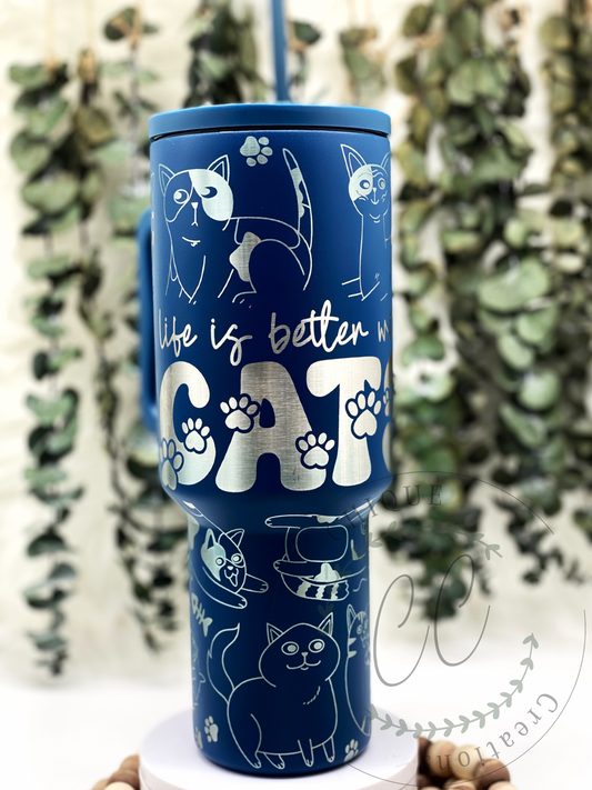 Laser Engraved Life Is Better With Cats, Tumbler With Handle, Stanley, Eras Tour