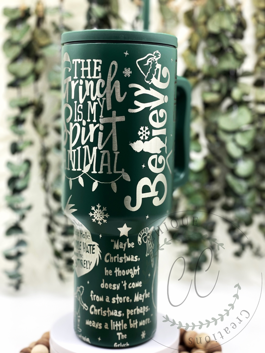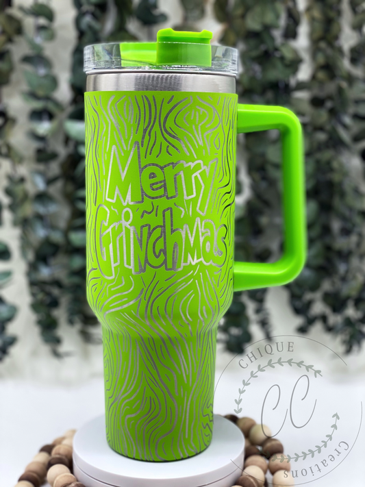 Laser Engraved Merry Grinchmas, Grinch Tumbler With Handle, Stanley