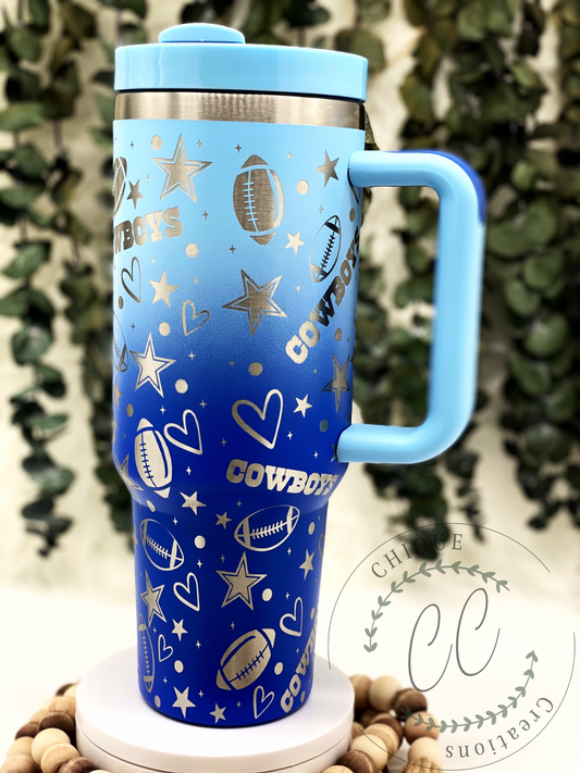 Laser Engraved Cowboys Football Tumbler With Handle, Stanley, Eras Tour
