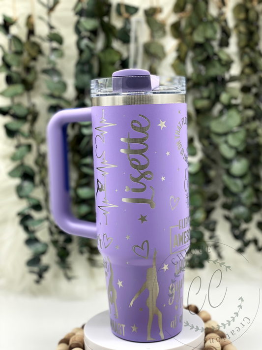 Laser Engraved Gymnastics Tumbler With Handle, Stanley