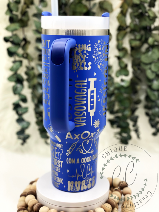 Laser Engraved ER Nurse, Emergency Room, Tumbler With Handle, Stanley, Eras Tour