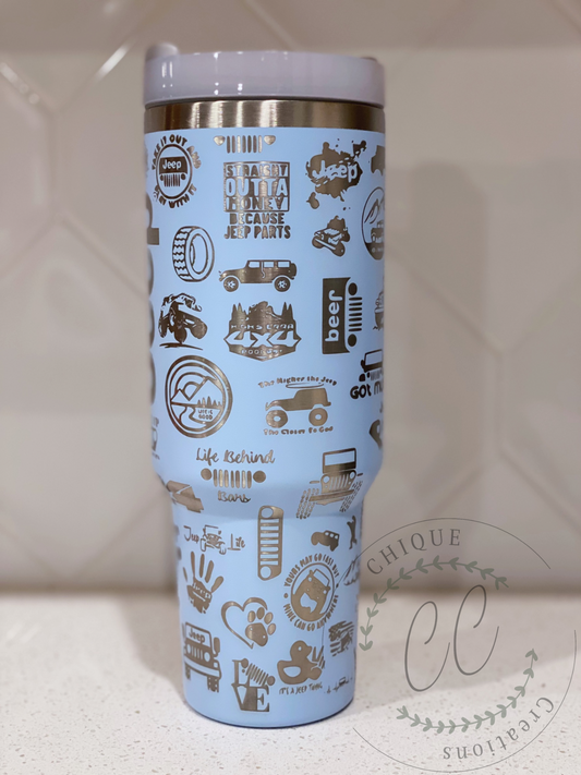 Laser Engraved GIRLS Jeep Themed Tumbler With Handle, Stanley
