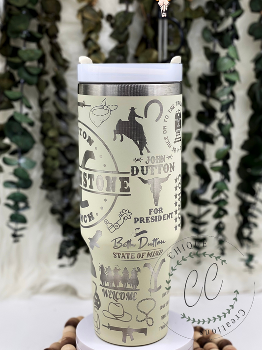 Laser Engraved YellowStone, RIP, Beth, Dutton Ranch Tumbler With Handle s