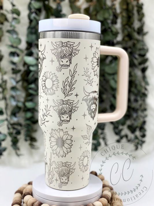 Laser Engraved Highland Cow, Live Like Somebody Left The Gate Open Tumbler With Handle