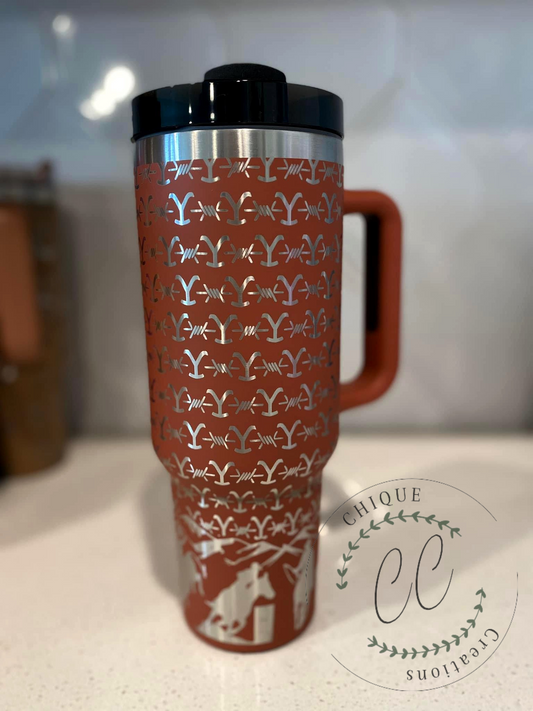 Laser Engraved YellowStone, RIP, Beth, Dutton Ranch, Big Y Tumbler With Handle s
