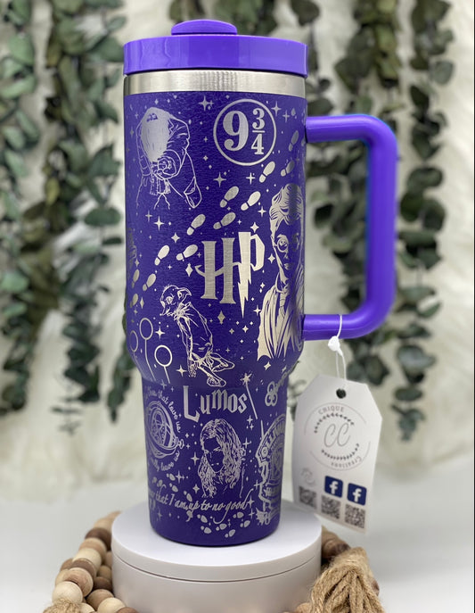 Laser Engraved Harry Potter, Wizard Tumbler With Handle