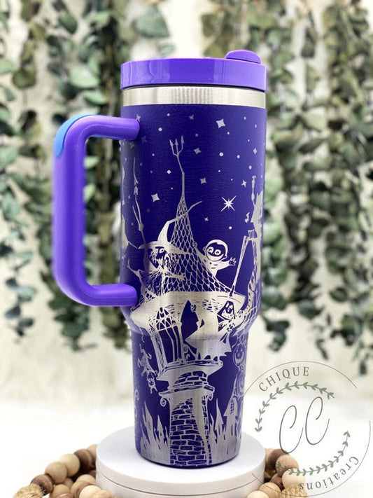 Laser Engraved Nightmare Before Christmas Tumbler With Handle