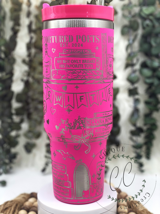 Laser Engraved Taylor Swift NEW Album Tortured Poets Tumbler With Handle