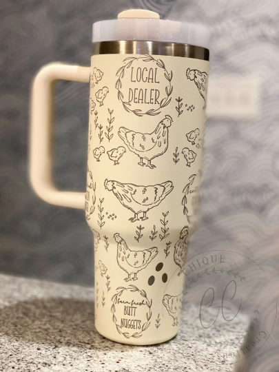 Laser Engraved Chicken, Egg Dealer Tumbler With Handle, Stanley, Eras Tour